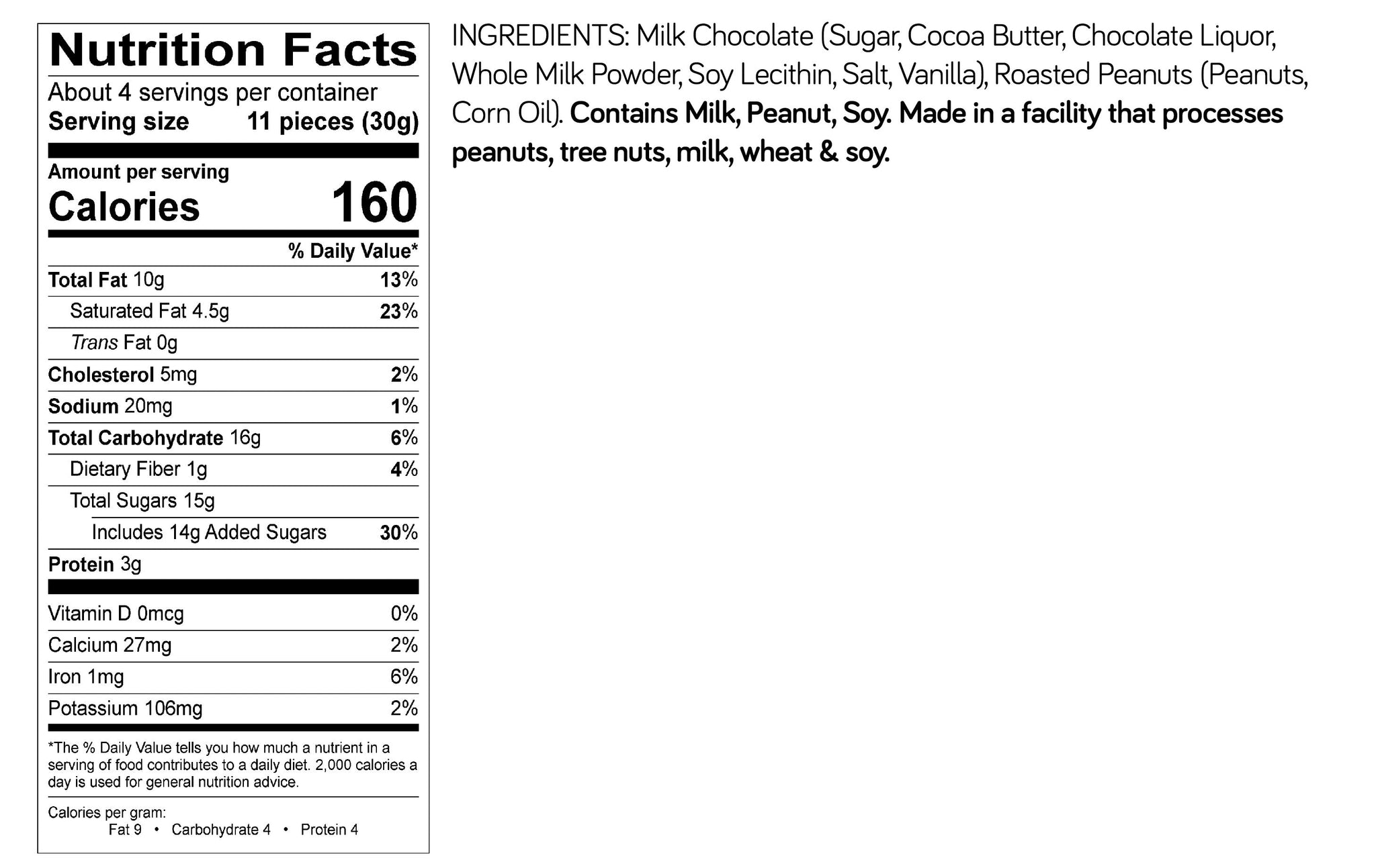 Chocolate covered peanuts are not only crunchy but have a creamy chocolaty exterior for those who really crave chocolate. The 4oz package is perfect for an afternoon snack and easy to throw in your bag.