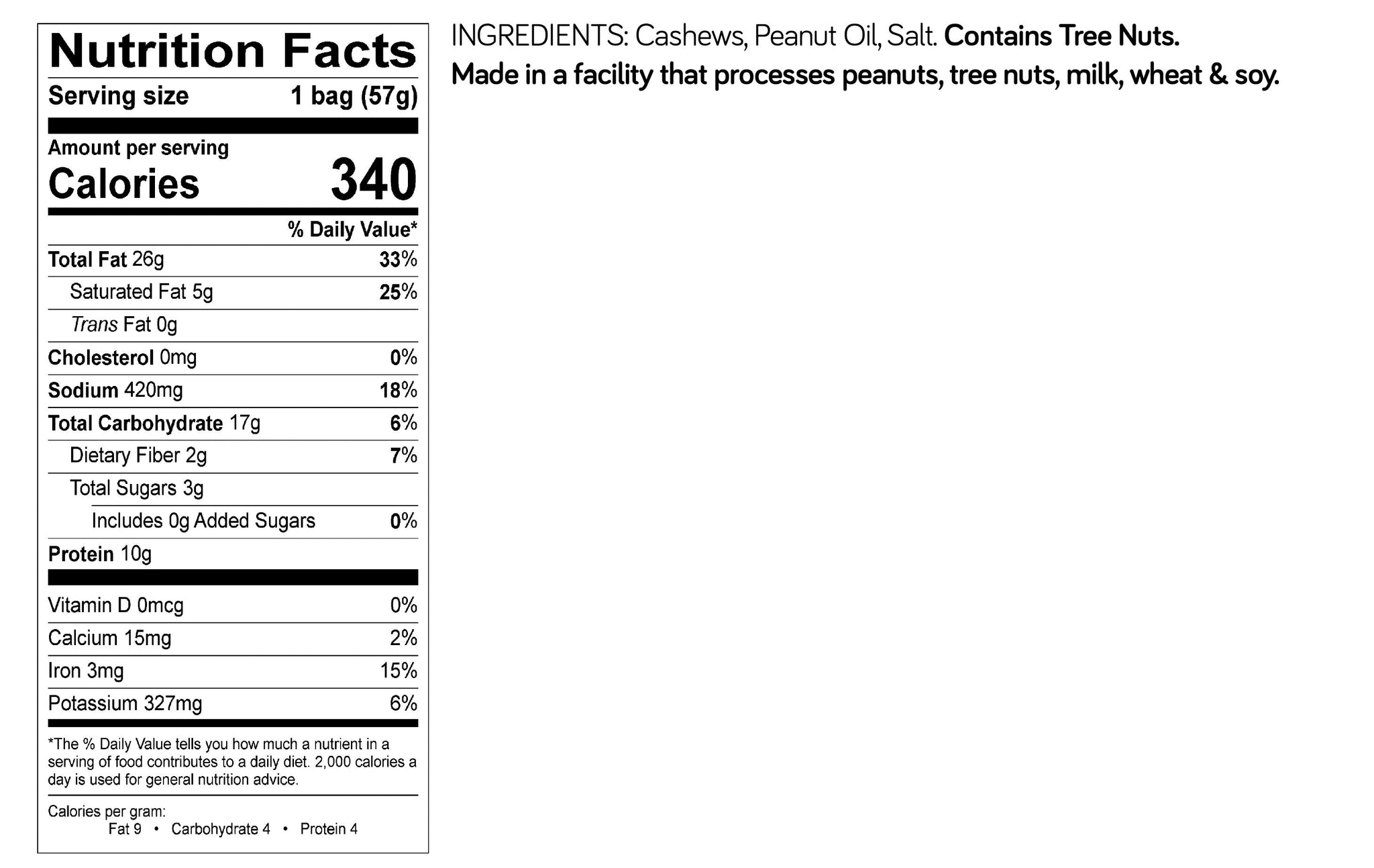 Cashews, Roasted and Salted – 24 pack, 2oz snack bags