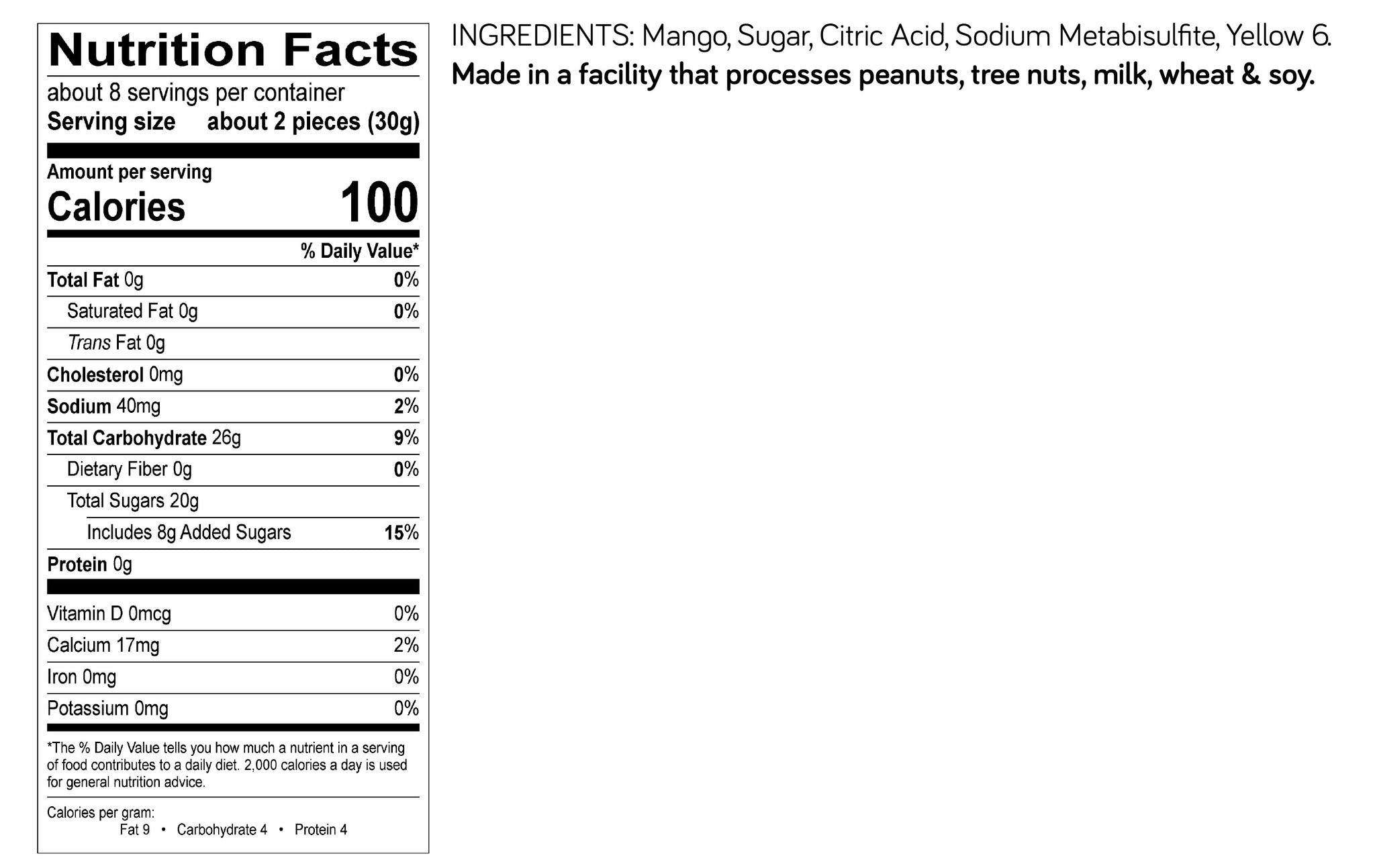 Sweet and fruity, our mango slices are chewy and easy to grab-n-go for a quick snack. They're a great source of fiber and immunity boosting Vitamin A.
