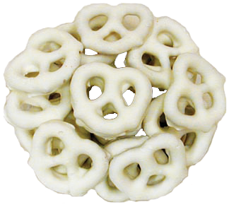 Sweet and Salty snack. Salty mini pretzel with a sweet yogurt coating. Sold here in our resealable cube.